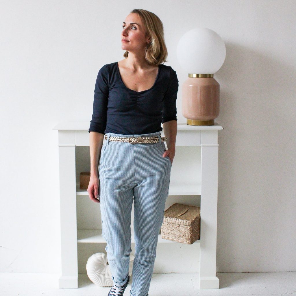 Cousez facilement votre pantalon cigarette. Pensé pour s’adapter à votre style et à votre morphologie, Ines est réalisable avec une taille haute ou mi-haute et des poches passepoilées ou plaquées sur l’arrière. Côté technique, rien de compliqué puisque ce modèle se ferme à l’aide d’un Zip invisible et on vous accompagne pas à pas dans le tutoriel vidéo dédié (sortie du tuto vidéo au plus tard le 30/11) (niveau intermédiaire 3/5).