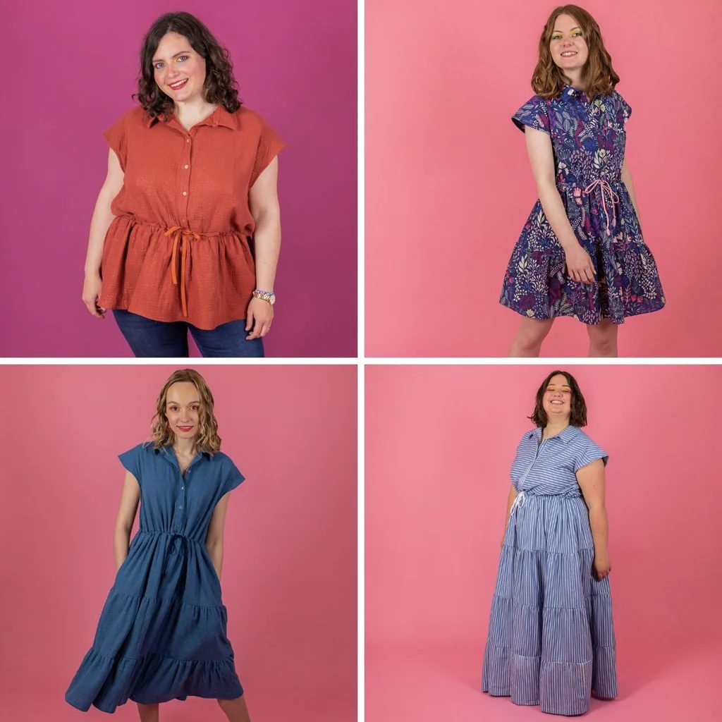 Un patron de couture qui se décline de la blouse jusqu’à la robe longue grâce à un jeu de volant. Le patron de la robe Abril contient un col de chemise et un col officier. Elle est sans manche, sa finition se fait par un biais discret à l’intérieur. Elle se ferme devant par une série de boutons et se sert sur la taille grâce à une coulisse. Pas de zip, pas de manches MAIS des poches !
