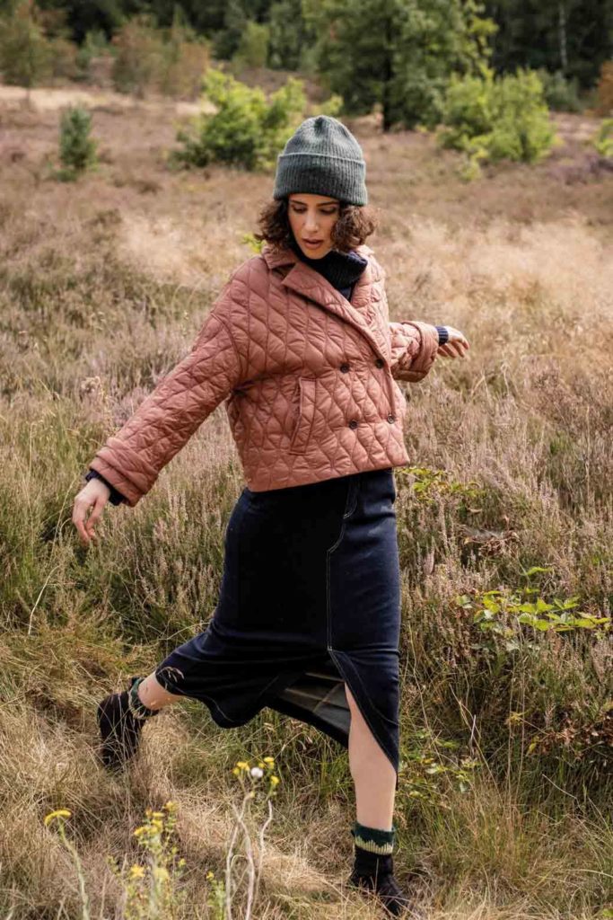 Chaque saison commence par une nouvelle veste. Cette petite veste courte et oversized avec un col tailleur et des revers demande un peu de ténacité, mais le résultat sera à la hauteur des efforts. Les poches avec liseré et le double boutonnage lui donnent un cachet certain. Les pattes sur les ourlets de manche et les piqûres décoratives assurent un effet cool. Dans ce cas précis, le twinning est de mise en associant Adria à la veste Reese pour l’un de vos enfants.