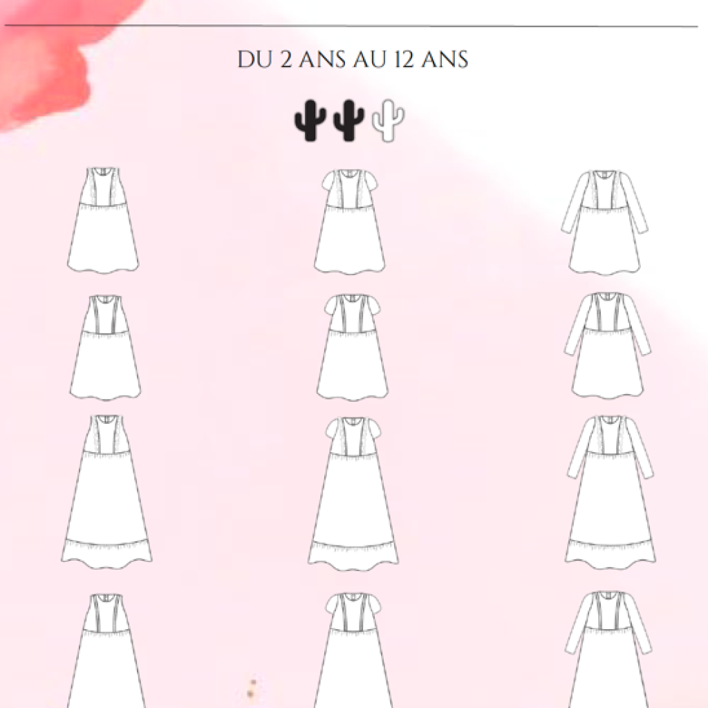 La robe enfant « Angeline » du 2 ans au 12 ans (soit 11 tailles) – niveau intermédiaire