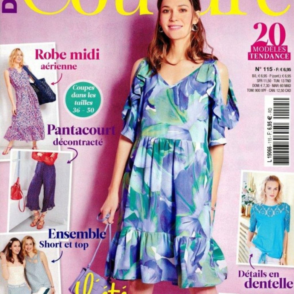 Pour l’été, une robe avec un imprimé floral et des volants, des blouses décontractées dans des tissus confortables ou avec des découpes, des pantalons d’été larges, une tunique en tissu brodé, une robe droite classique, des instructions détaillées.