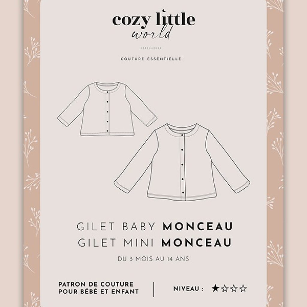 Version bébé et enfant du Gilet Monceau, du 3 mois au 14 ans…un indispensable de la garde robe. Encolure ronde légèrement dégagée, patte de boutonnage finie par une parementure, à agrémenter de boutons pression ou non.