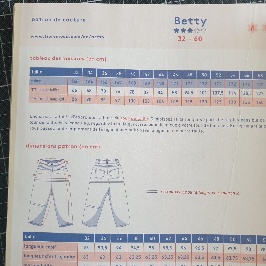 Tailles disponibles