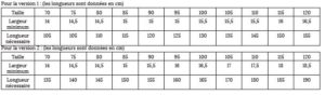 Élastique de sous-bande : 1 m jusqu’à la taille 100. 1,20 m pour les tailles 115 et 120.