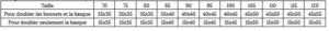 Élastique de bretelle : 1 m pour toutes les tailles.