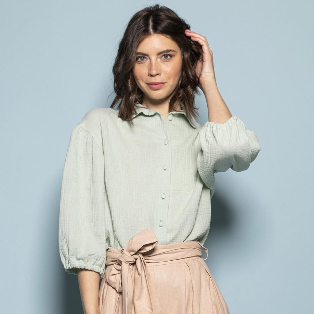 Nous avons utilisé une viscose souple et un tetra doux en coton pour cette blouse. Mais tous les tissus sont adaptés pour autant qu’ils ne soient ni trop épais (sinon les fronces et le col seront moins jolis), ni (trop) extensibles. Optez pour la viscose si vous voulez des manches fluides ou du coton pour des manches plus structurées. Le chambray, le crêpe, le lin... sont également de bons choix !