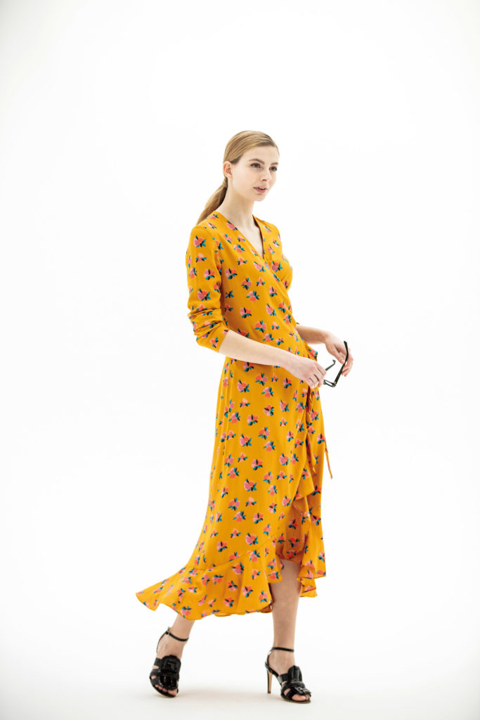 Go western avec la robe portefeuille Charlotte. Sans fanfreluches grâce au haut simple à manches longues, mais super féminine avec des volants romantiques dans la partie jupe. L’encolure est montée avec une parementure. Charlotte est unique en long ou en version mini.