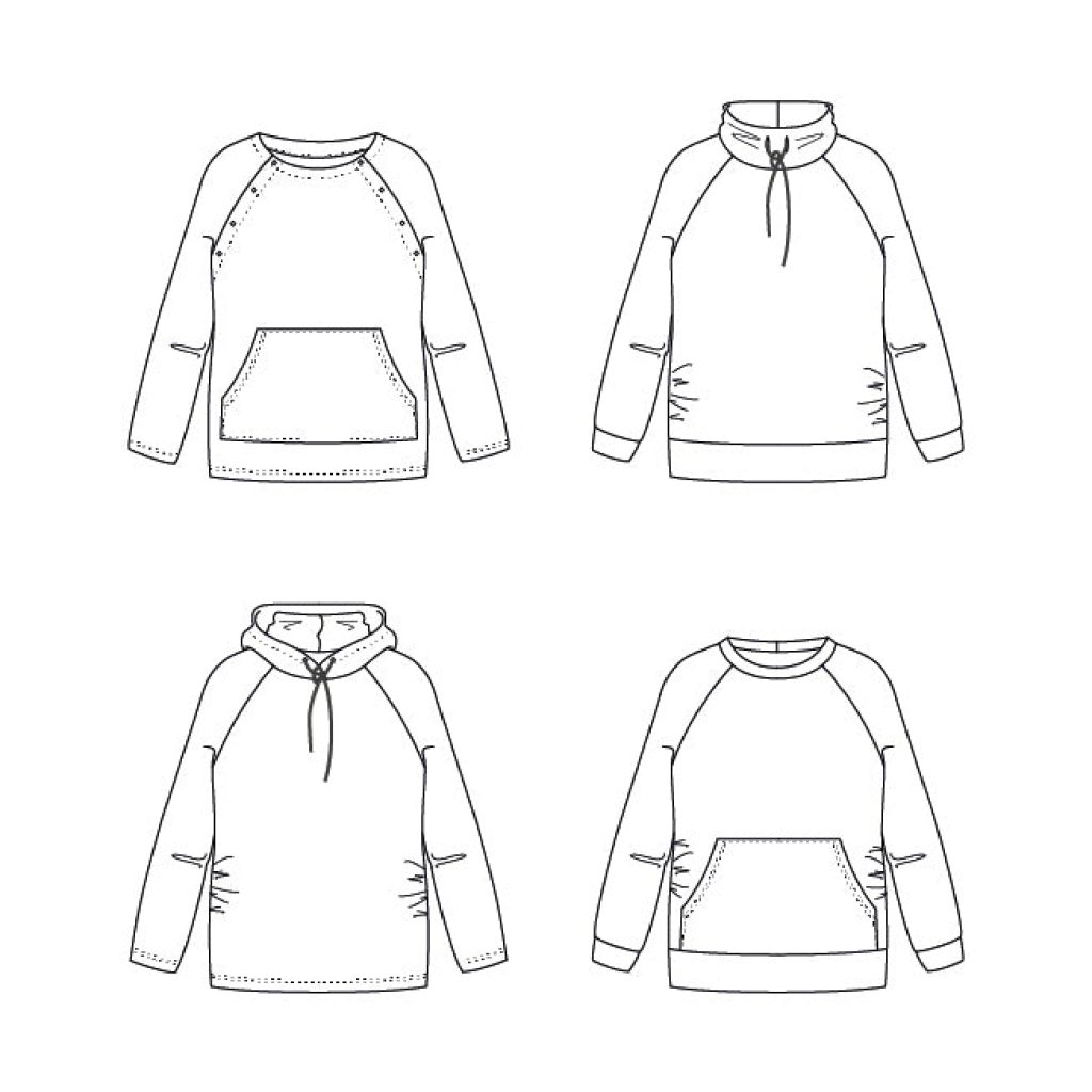 👉 4 cols différents ! Classique, snood, capuche ou, notre chouchou, avec une patte de boutonnage des 2 côtés, qui en plus permet l’allaitement et s’enfile particulièrement facilement.