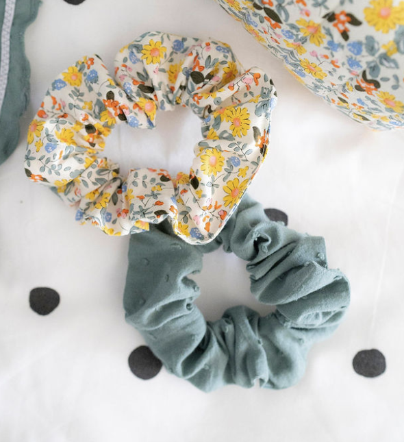 s’il y a un accessoire dont on ne se lasse pas, c’est le chouchou. Dans les cheveux ou au poignet, il sera tellement joli dans une version imprimée mais également dans une version plumetis.