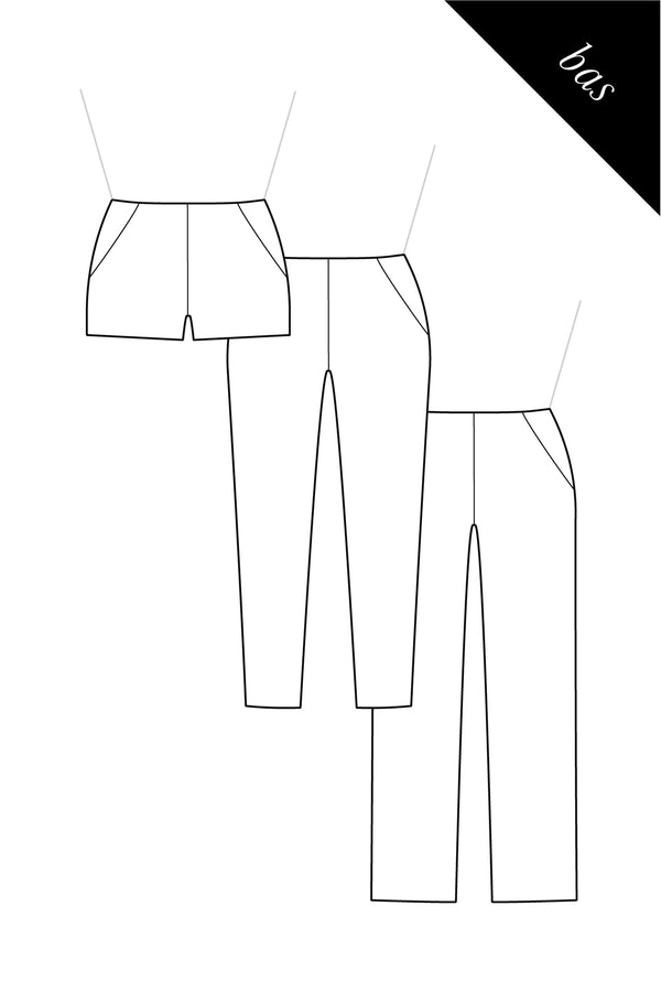 La sélection des bas s’agrandit avec cette combinaison à poches ajustée à la taille et aux hanches et proposé en trois styles : short, pantalon cigarette en longueur 7/8 ou pantalon large en version longue.
