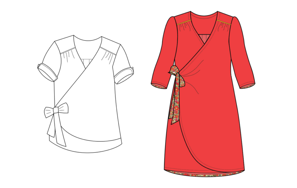 Plein de jolis détails pour se faire plaisir : nœud sur le devant, empiècement devant et dos, bracelets de manches passepoilés… De quoi exprimer toute votre créativité, en jouant sur les tissus, les couleurs, les matières !