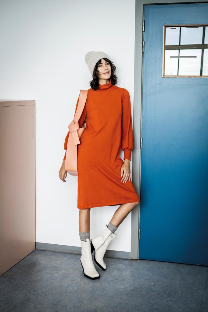 Daniella associe la classe et le confort, sans aucun effort. Ligne en A légère, col roulé et bords manchette en jersey. Les emmanchures bouffantes ajoutent un peu plus de féminité. Danielle se porte très bien avec un gros collant, dans une couleur assortie ou contrastante. Ou jambes nues, une journée ensoleillée. Vous voudrez certainement réaliser plusieurs exemplaires de cette robe délicieuse. C’est possible, en un rien de temps (ou presque). Et même en différentes longueurs, si vous voulez. Regardez sur www.fibremood.com. Vous pourrez également tout simplement transformer Danielle en un haut. Vous préférez des manches dansantes, amples ? Supprimez les bords manchette.