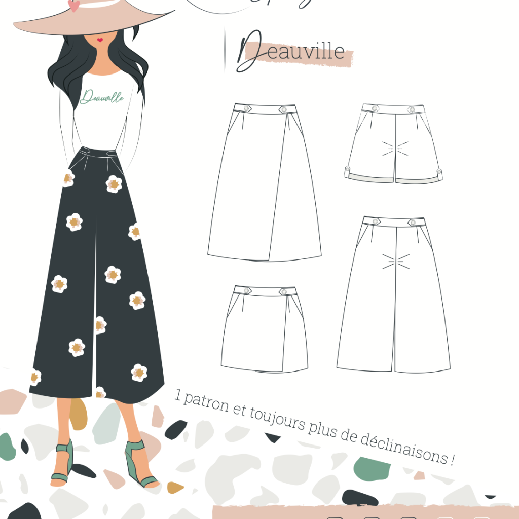 Deauville, c’est un pantalon, mais pas que. C’est aussi un short, mais pas que. C’est enfin une jupe culotte ! Avec Deauville vous pourrez vous la jouer élégante, sportive, pin-up… bref vous êtes armée pour profiter pleinement de Deauville été, comme hiver en jouant sur