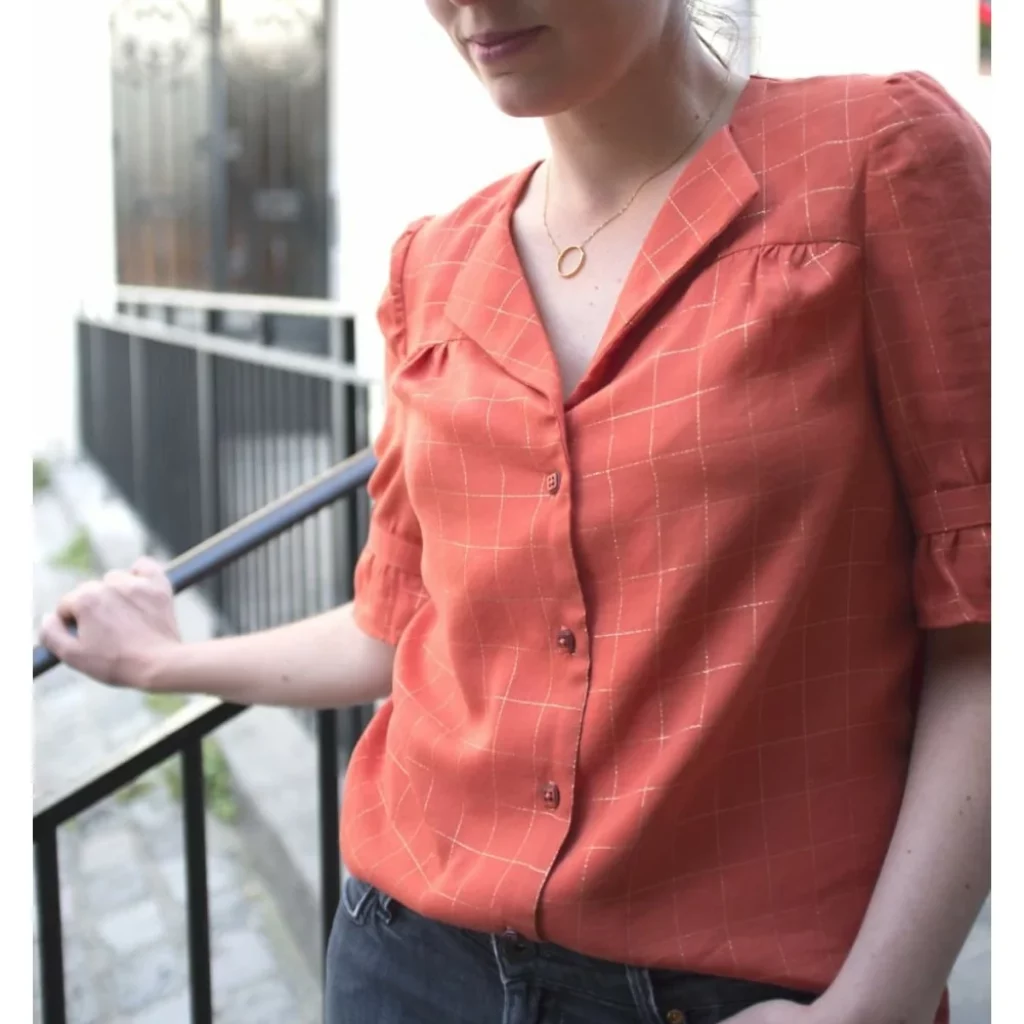 Le patron de couture pour femme Dorothie, est un petit chemisier aux détails féminins : découpes et fronces sur le devant et sur le dos, revers à l’encolure, fentes côtés, bas dos liquette et têtes de manches froncées.
