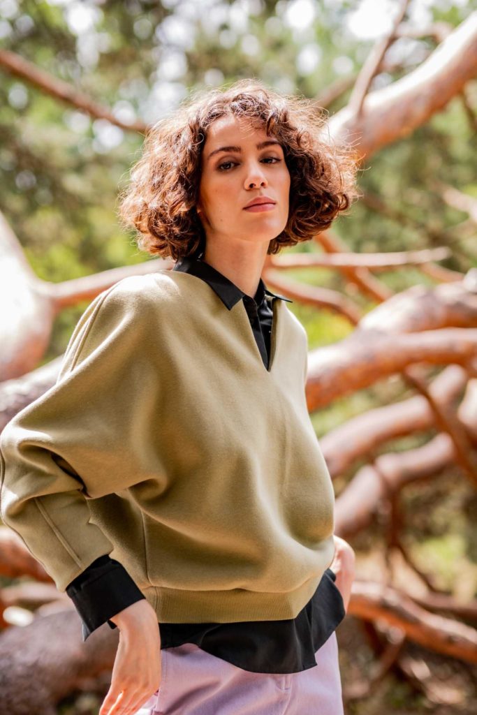 Un sweat est toujours une bonne idée ! Elaine est délicieux de minimalisme. Les petits détails de ce sweat : des manches rapportées légèrement bouffantes, des pinces à l’ourlet des manches, un décolleté en V élégant et un bord ourlet relax en tissu bord-côte. À nous ce modèle !