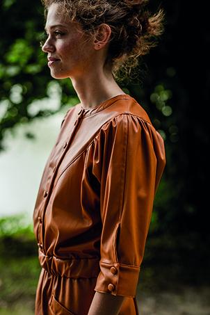 Cette robe relativement courte est super élégante. Ces détails sont les atouts de Flora : taille élastiquée, rangée de boutons en haut, joli liseré d’encolure, une ambiance années 80 avec un empiècement original et des fronces sur les manches trois-quarts avec des boutons sur le bord manchette. Vous pouvez réaliser cette robe avec ou sans poches. Et si un projet un peu plus compliqué ne vous fait pas peur, vous pouvez réaliser des poches à liseré. Votre projet sera un peu plus simple sans poches.