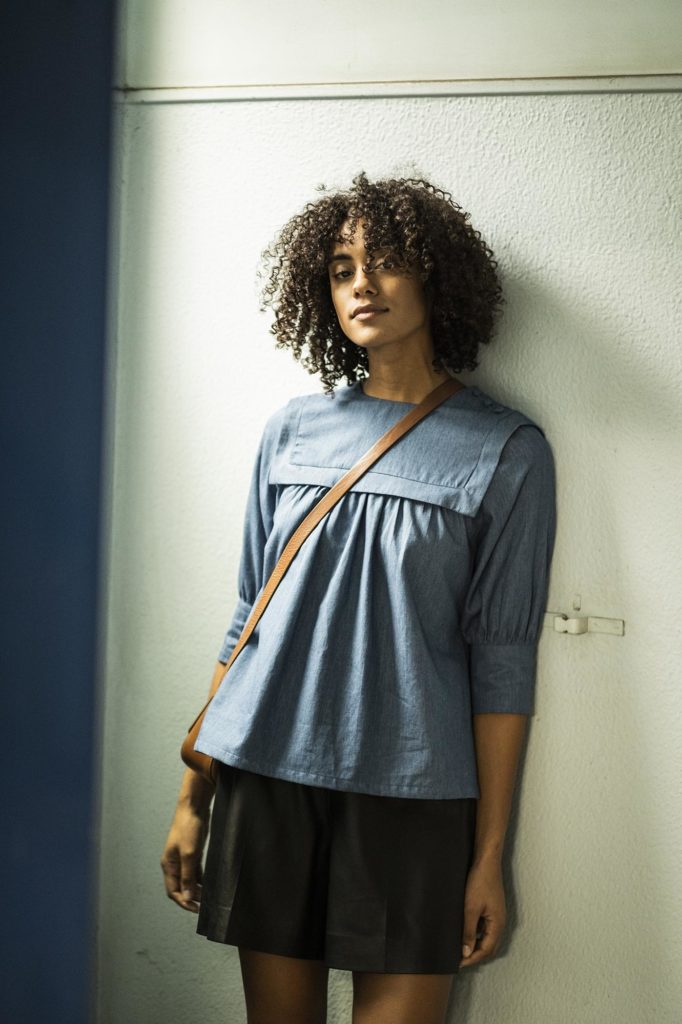 Harmony vous laisse tout un éventail de choix. Choisissez parmi des tissus tissés : chambray, Tencel, lin, interlock … Selon l’effet souhaité et votre silhouette, optez pour un tissu souple ou plus raide. Un tissu souple tel qu’un(e) (crêpe de) viscose ou une viscose tissée apporte moins de volume. Si vous aimez la structure et le volume, vous pouvez réaliser Harmony en popeline, par exemple