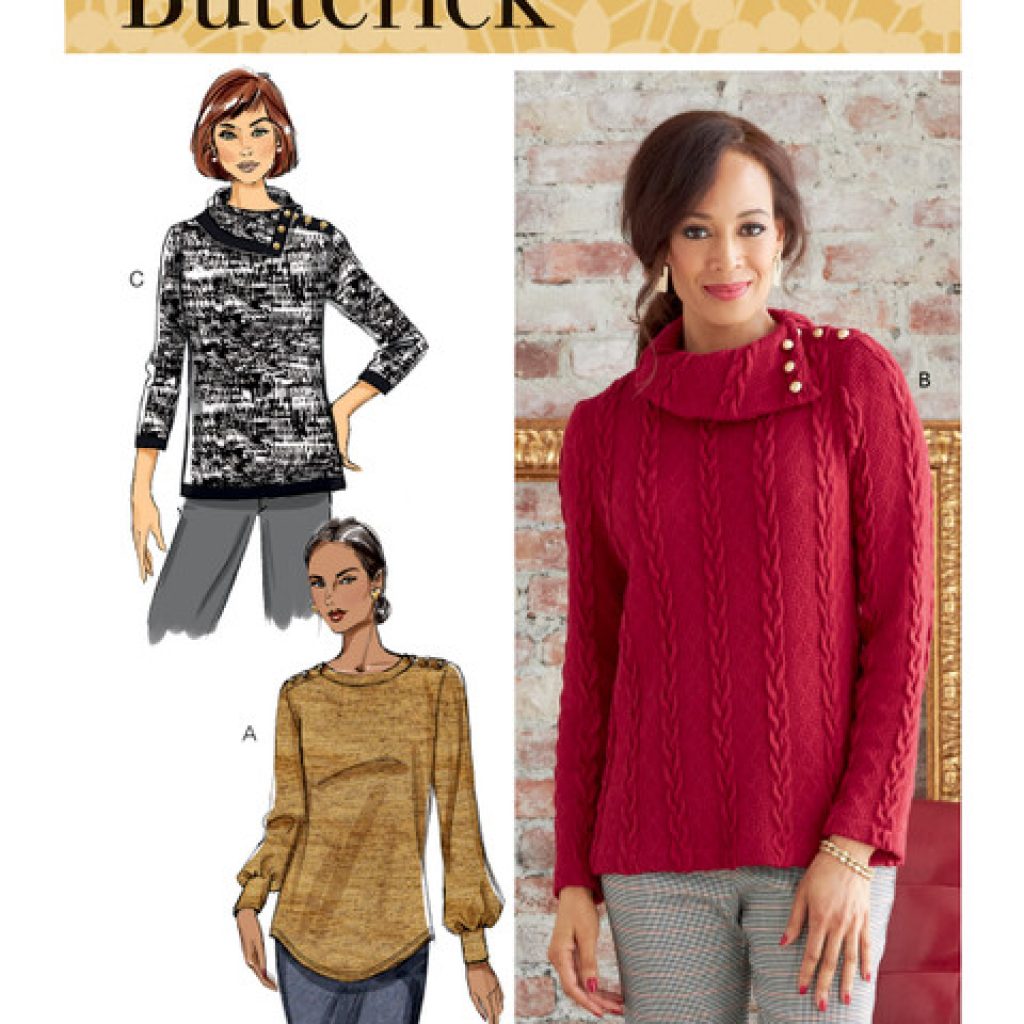 Le haut pull des femmes a des variations d’encolure et de manches.