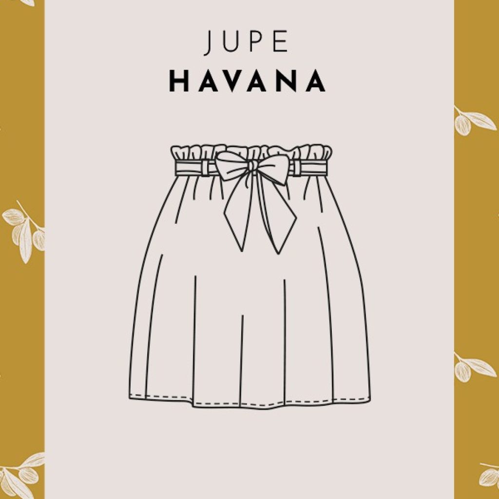 La jupe HAVANA est la petite jupe parfaite pour se lancer en couture ! Peu de pièces et des coutures droites, sans négliger le style grâce à son joli noeud et sa taille froncée.