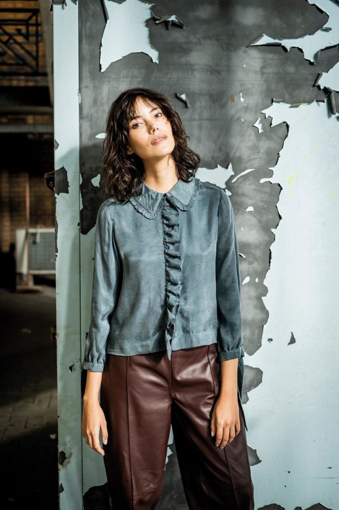 Le top Honey reprend très joliment cette tendance. Un col froncé romantique embrasse l’encolure. Vous préférez supprimer ce volant ? Ce petit chemisier de caractère n’en sera pas moins charmant. Même complètement épuré, avec seul le pied de col et une fermeture à boutons sans volant. Honey a une belle ligne en A légère, grâce aux fronces du dos. Le bas des manches est également froncé et joliment fini avec un petit bord et des rubans à nouer.