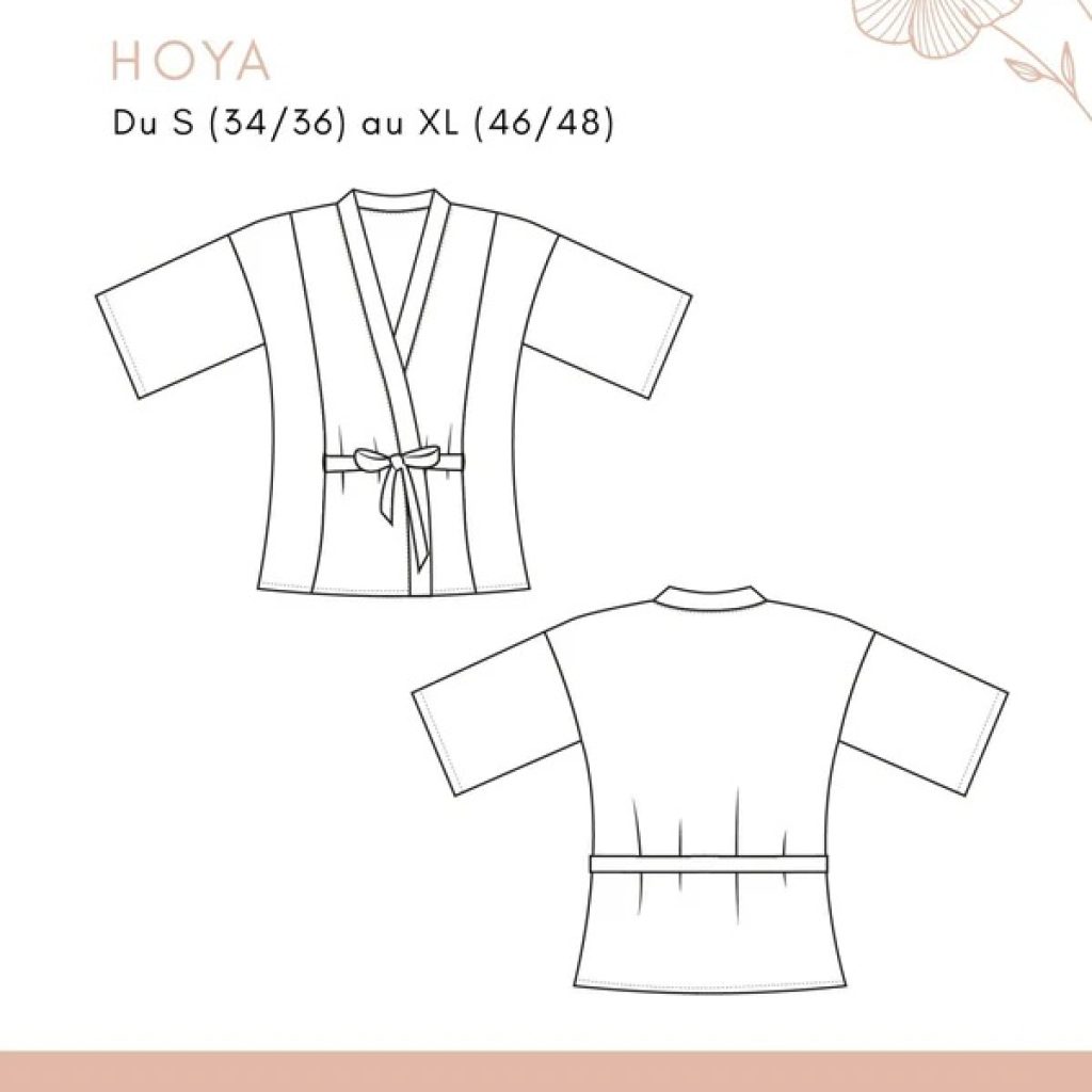 kimono court, imaginé pour la box couture de janvier. A la fois élégant et confortable, Hoya se porte aussi bien à l’extérieur comme veste chic et légère, qu’à la maison pour un look plus décontracté