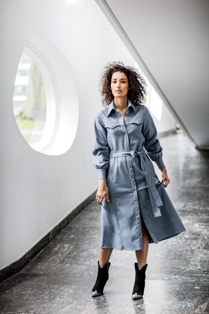 Bien sûr que vous avez de la place pour une robe chemisier dans votre garde-robe ! Surtout quand elle s’est inspirée de Calamity Jane. Ivory a une jupe légèrement évasée et des manches avec des fronces au-dessus de poignets de manches larges et près du corps. Le modèle avec ses détails subtils de style western, est audacieux : un col à grandes pointes, des pointes typiques sur les empiècements des épaules et le dos, une ceinture cool.