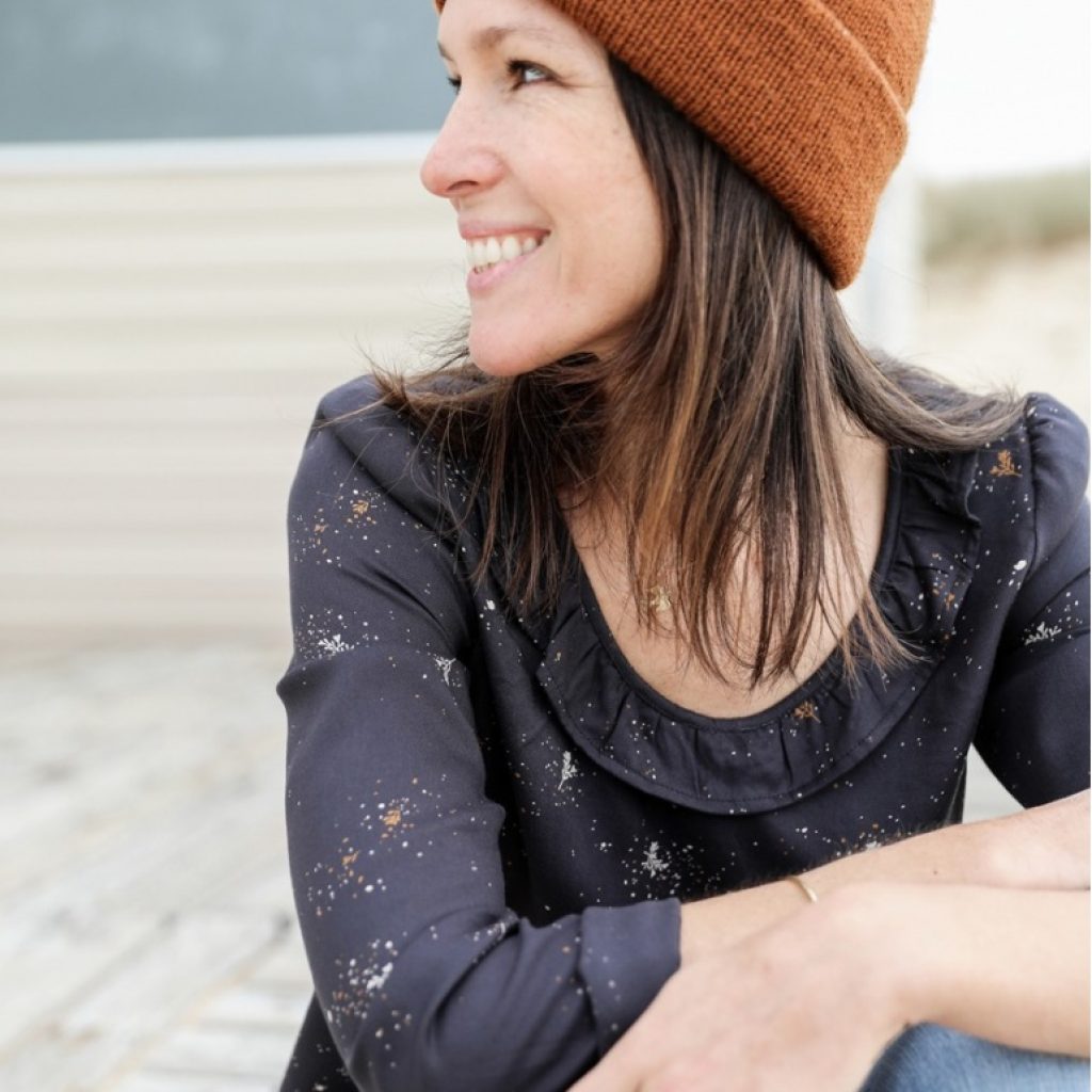 Soulignée par un froufrou, la large encolure ronde de cette blouse fait tout son charme. Manche droite, légèrement froncée à l’épaule. Peut également se décliner en robe avec l’ajout d’une basque froncée, élastiquée à la taille ou non. A réaliser avec ou sans manches.