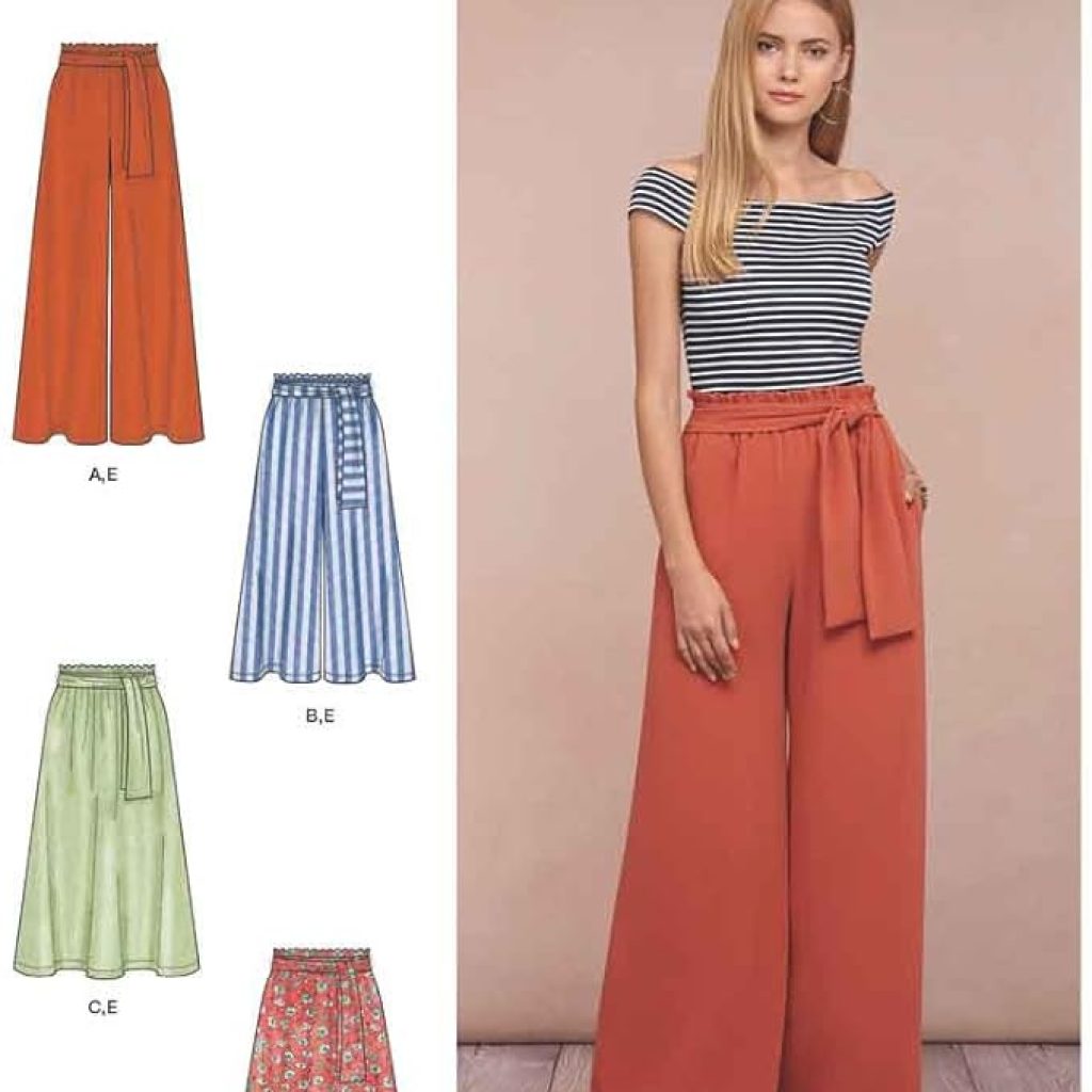 Les pantalons et jupes taille haute en papier faciles à coudre pour les femmes de taille XS à XL présentent un design à enfiler avec des poches et une ceinture à nouer. Le pantalon a une jambe large. La jupe et le pantalon sont disponibles en deux longueurs.