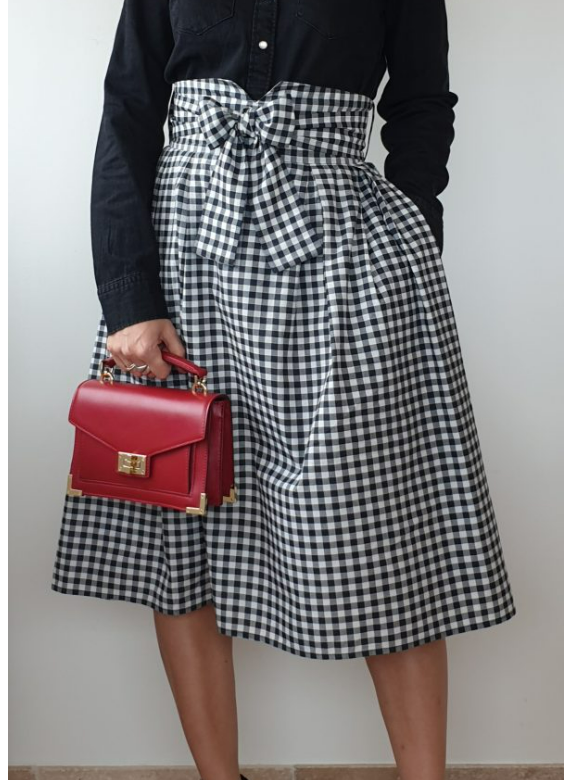la jupe L’élégante coupe Midi taille haute avec V sur le milieu de la ceinture. L’élégante sera parfaite avec une paire de talons pour une inspiration féminine et bohème. La grande particularité est ce joli col Anna qui est amovible et assure un style romantique et ultra moderne oblige !