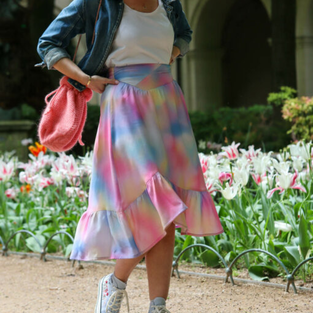 Longueur midi, à porter taille haute, à réaliser dans un tissu chaîne et trame