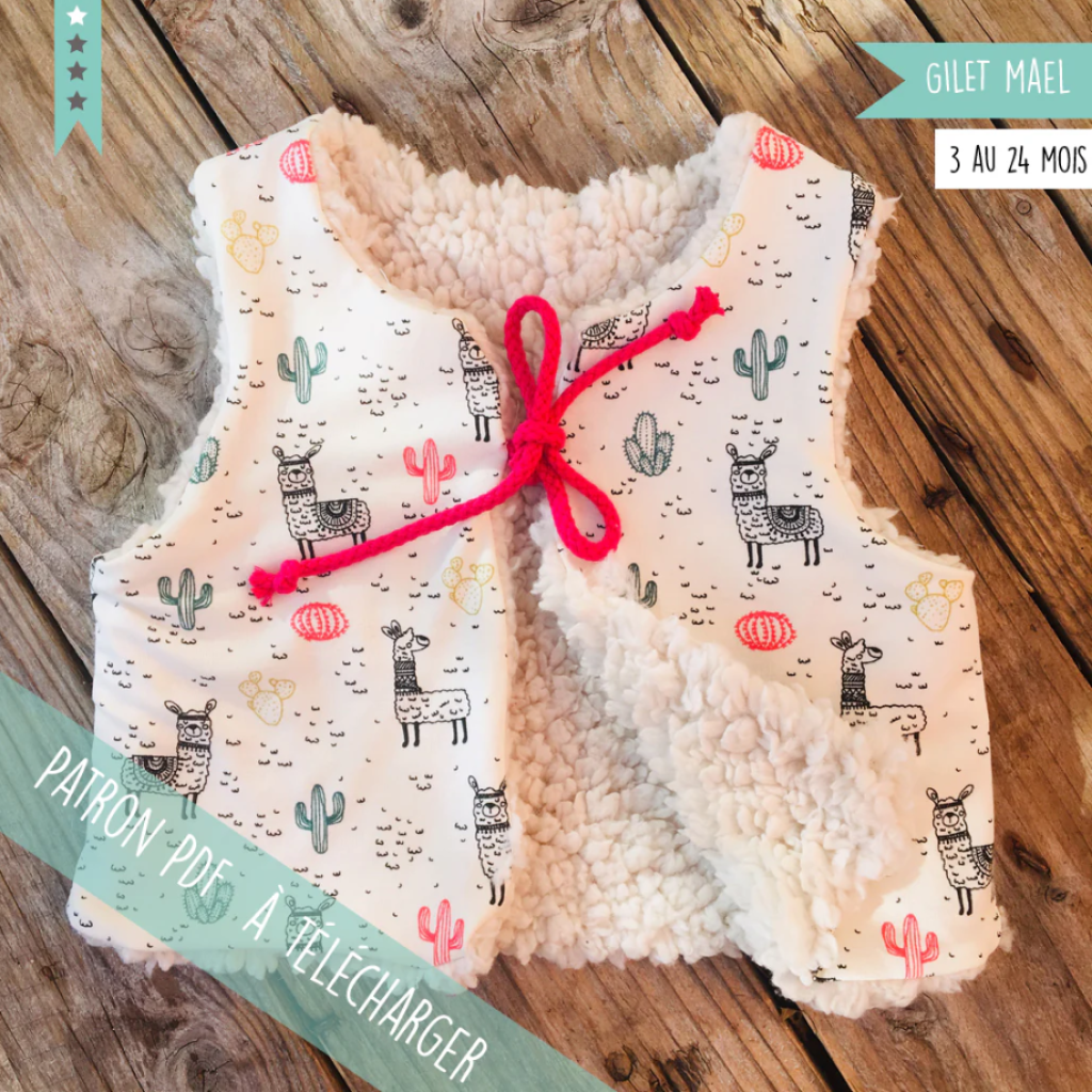 Ce gilet de berger réversible est un autre indispensable de la couture pour bébés et enfants car il permet de s’amuser à coudre un modèle rapidement en mixant les matières envers/endroit.