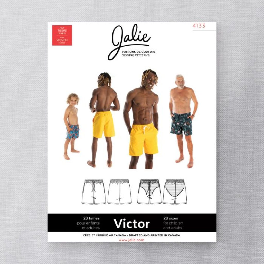 Short de baignade avec taille élastique et cordon (facultatif). Poches à la couture côté et doublure en filet. Facile à coudre.