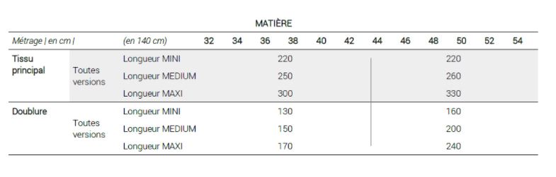 | Taille | 32, 34, 36, 38, 40, 42, 44, 46, 48, 50, 52, 54 |