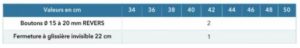 | Taille | 34, 36, 38, 40, 42, 44, 46, 48, 50 |