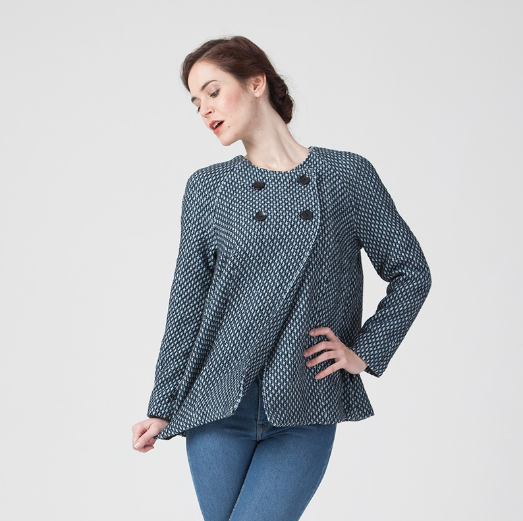Nine, c’est un petit manteau court très contemporain et féminin. Il est légèrement trapèze avec son pli creux dans le milieu dos. C’est un modèle à décliner dans tous les lainages.