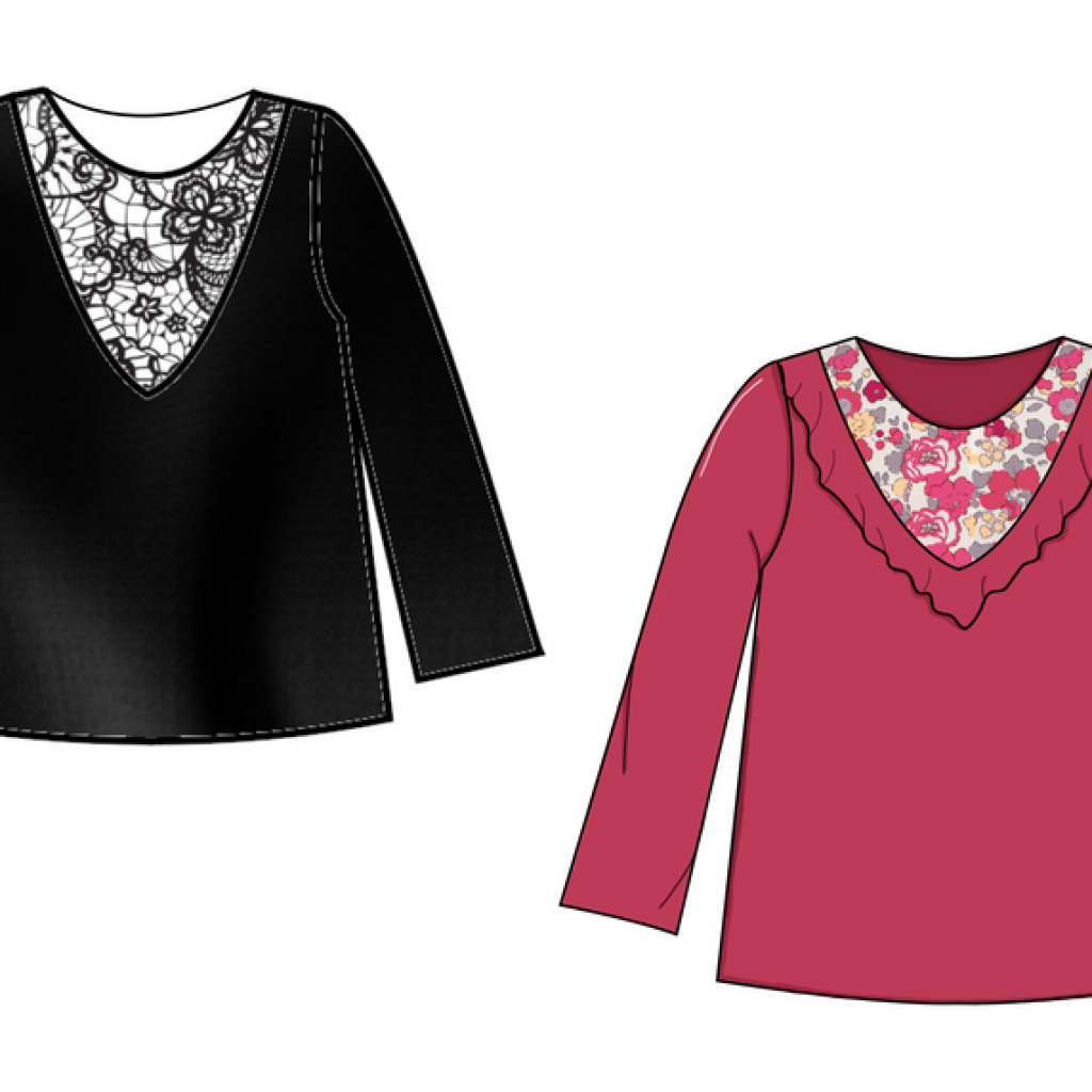 Possibilité de jouer sur les tissus pour coudre une blouse à dentelle (d’où le nom “Osez Joséphine” ;-)), un sweat, un haut pour aller travailler…