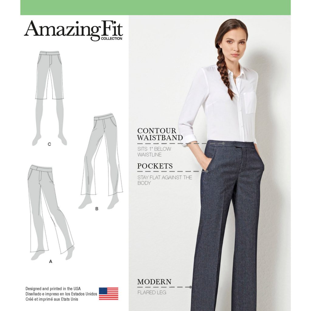 Pantalons larges taille Miss et Plus Amazing Fit en pleine longueur, courts et jusqu’aux genoux dotés d’une braguette zippée sur le devant et de pièces de motif séparées pour une coupe slim, moyenne et courbée.