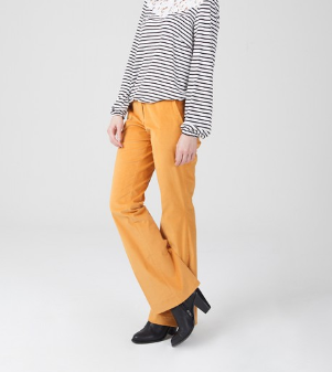 – tracé rouge jusqu’au genou puis bleu : patte d’éph. Utilisez un jeans, un velours cotelé ou un coton rayé.