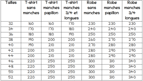 | Taille | 32, 34, 36, 38, 40, 42, 44, 46, 48, 50, 52 |