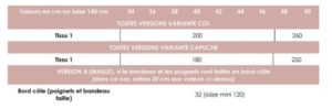 VARIANTE COL DRAPÉ OU À GRANDE CAPUCHE : les deux VARIANTES sont compatibles avec les deux VERSIONS.