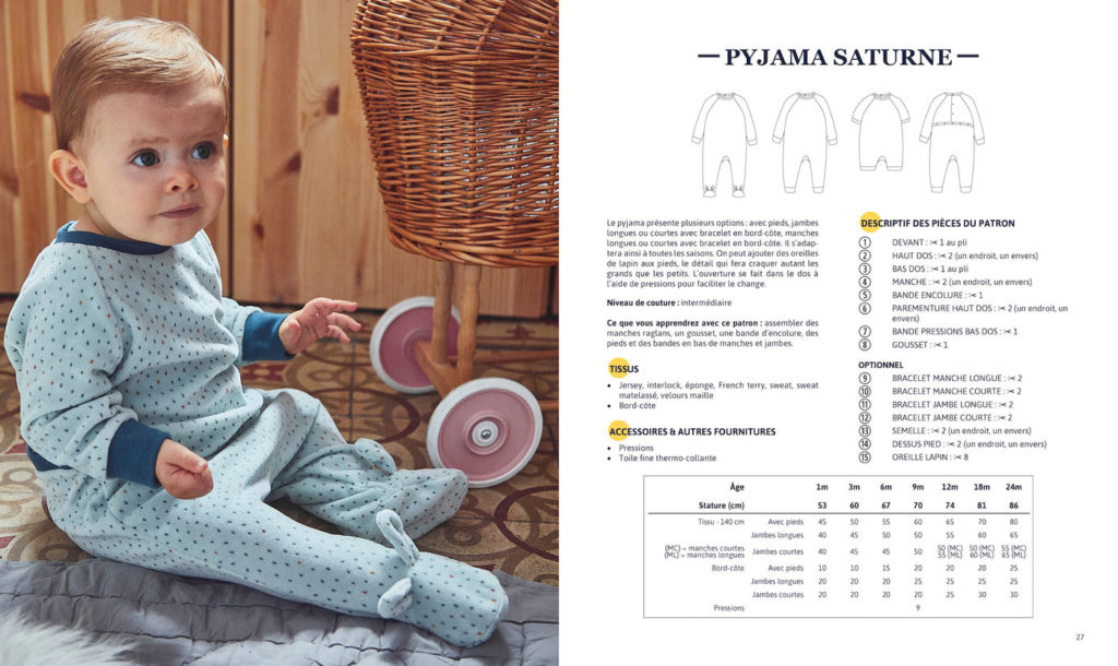 Pyjama long, court, avec pied ou sans, manches longues ou croutes