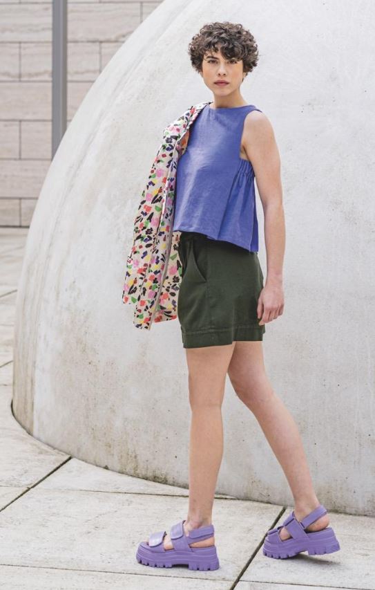 Ce top élégant et ultraféminin est absolument indispensable. Ce projet de couture est exigeant, mais il vous donnera un classique que vous enfilerez avec plaisir pendant des années. Quilla se porte court, même si vous pouvez bien sûr adapter la longueur. Ce haut sans manches à la coupe évasée présente une encolure haute devant et au dos. L’encolure et les emmanchures sont renforcées par une parementure. Ses autres particularités ? Les côtés sont élastiqués pour un effet surprenant. Vous pouvez en outre les réaliser dans un tissu différent, ou une autre couleur, pour créer un vêtement vraiment original.