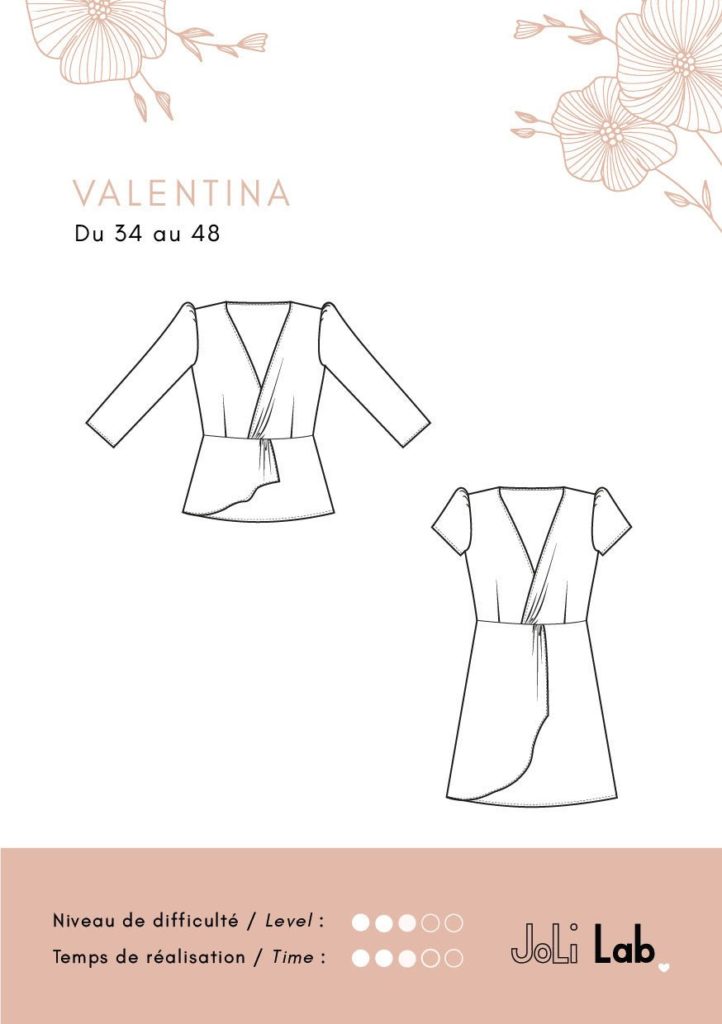 Cousez facilement une élégante robe (ou blouse) à porter en toute saison. Taille subtilement froncée, pinces dos pour souligner la silhouette, décolleté croisé et jupe aux courbes délicates, Valentina a tout pour plaire. Grâce à notre tutoriel vidéo elle est accessible aux débutantes motivées (niveau estimé : 3/5).