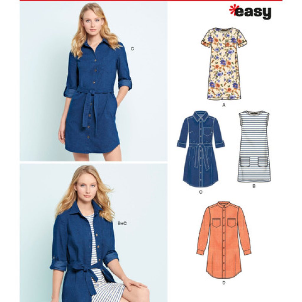 Obtenez ce look confortable et causal avec la robe chemise des femmes et le motif de robe en tricot. La robe chemise a un col en option et la robe t-shirt en tricot peut être sans manches avec deux poches plaquées, ou à manches courtes avec poche poitrine.