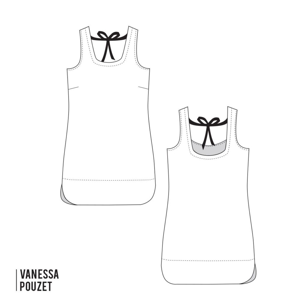 Robe légère, joliment nouée dans le dos. Deux longueurs au choix : mini ou soft adaptable. Décolleté devant et dos. Ourlet arrondi qui fait tout. Détails soignés. Ce patron inclus un bonus très volanté pour une version époustouflante