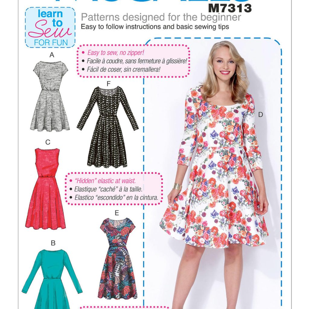 Les robes pull ont des variations de décolleté, un corsage ajusté, une taille élastiquée et un ourlet étroit. B, D, F : Ourlet cousu sur les manches.