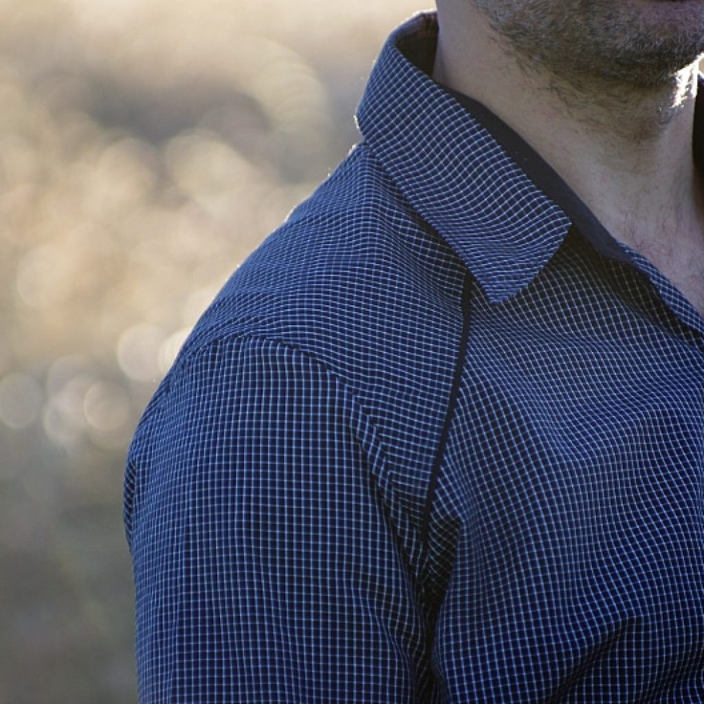 Chemise classique pour homme, de coupe cintrée et à col de type « italien ». L’identité de la chemise se retrouve ici dans le col avec pied de col, le boutonnage devant, la coupe arrondie légèrement échancrée sur les côtés, et les manches se terminant par des bracelets et pattes de manche. Des découpes facultatives viennent structurer SAPHIR sur le devant et le dos, mais aussi au niveau des épaules pour marquer la carrure masculine. Elles permettent également de jouer sur différents niveaux d’ajustement et de contrastes.