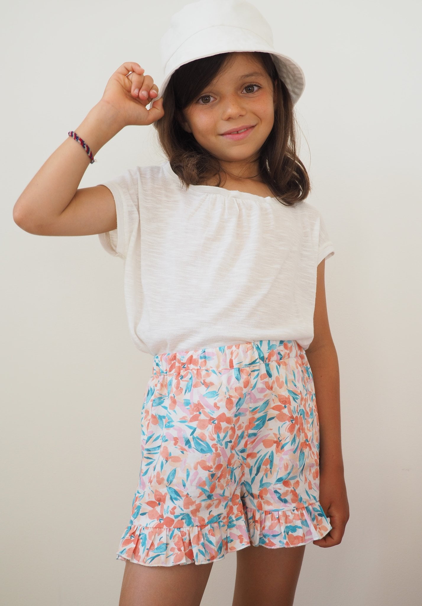 Dans le sillage de son grand frère, ce patron de short, à la taille mi-haute, vous permettra de coudre pour vos 4 à 12 ans un short confortable (avec taille élastiquée) avec ou sans les froufrous. La version avec surjupe est également proposée afin de créer un effet jupe – short (appelé plus classiquement « jupe culotte »). Cette version pourra également être avec ou sans froufrou. Les froufrous pourront être, pour les versions avec ou sans surjupe, circulaires ou froncés. Et comme toujours, selon le tissu et la version choisis, votre Petit Marius pourra aussi bien être détente, sport, homewear que plus habillé !