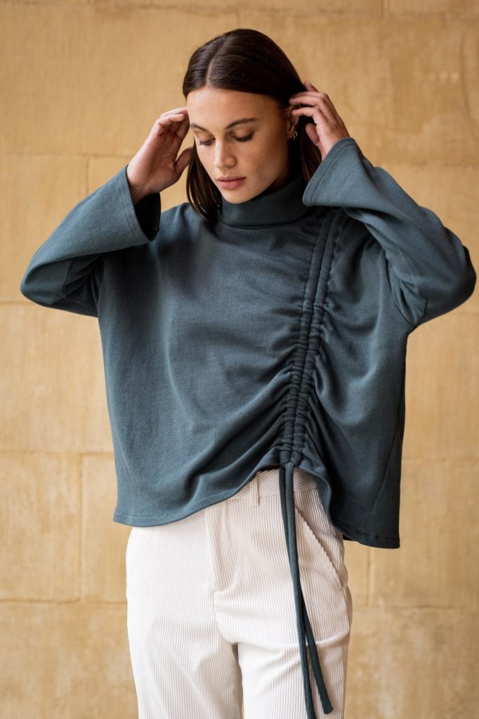 Un pull favori chaque automne et celui-ci a déjà de bonnes chances de se retrouver en haut de votre liste : Soraya est un modèle oversize à col roulé dans lequel il fait bon se blottir. Les manches sont simples : droites et longues. La longueur dépend de vous : un peu plus longue au niveau des hanches ou légèrement raccourcie. Ce qui surprend dans ce pull, ce sont les rubans, qui permettent de jouer avec un effet froncé ? Vous n’êtes pas fan ? Vous pouvez bien sûr passer cette étape et opter pour un modèle basique.