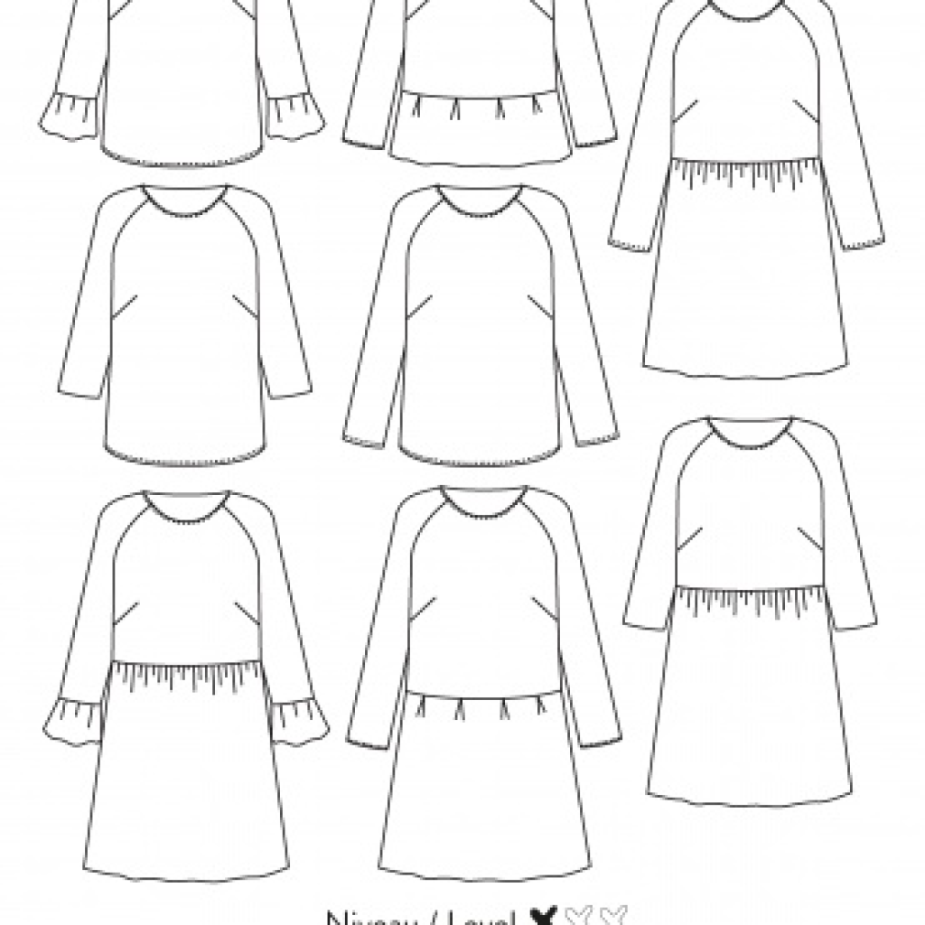 Blouse atemporelle avec manches raglan longueur 3/4 et basque au bas des manches.